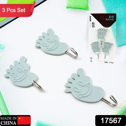 Multipurpose Strong Hook Self-Adhesive hooks for wall Heavy Plastic Hook, Sticky Hook Household For Home, Decorative Hooks, Bathroom & All Type Wall Use Hook, Suitable for Bathroom, Kitchen, Office 3 Hook (1 Pc)