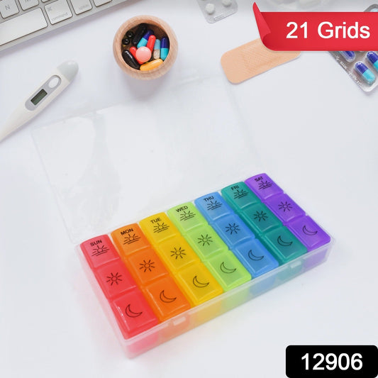 Pill Box 7 Day Weekly Medicine Organizer Daily Planner Portable Travel Container Holder for Vitamin and Supplement Moisture-Proof Compartments Case for Pocket Purse Easy to Use BPA Free (21 Grid)