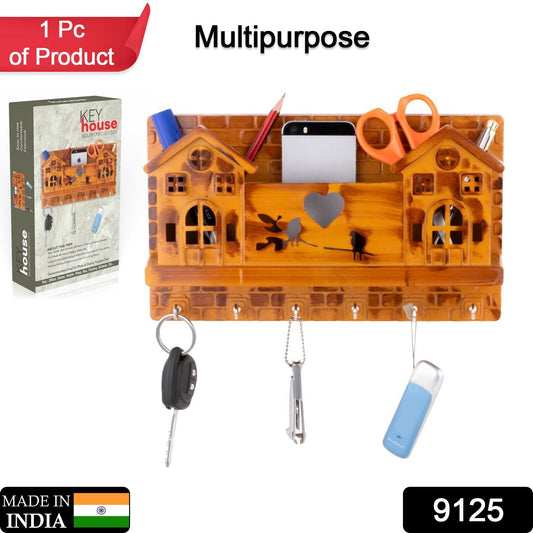 6 Hooks House Design Wooden Keys Stand for Entryway, Kitchen, Office, Mudroom Wall, Mount Decorative Keys Organizer Key Holder.