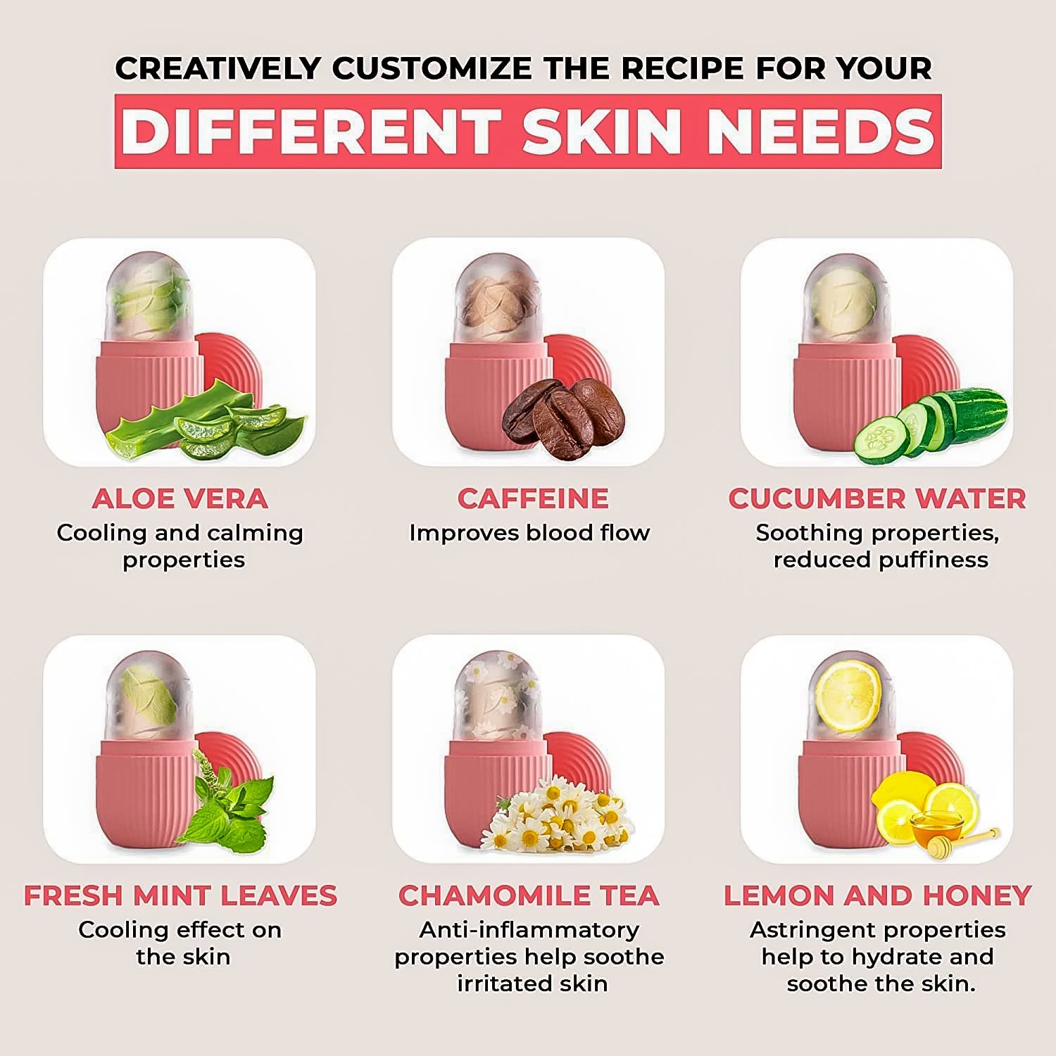 - Suitable for All Skin Types. Reduce blood redness, remove puffiness and fine lines, shrink pores and lubricate the skin, improve Skin Problems.