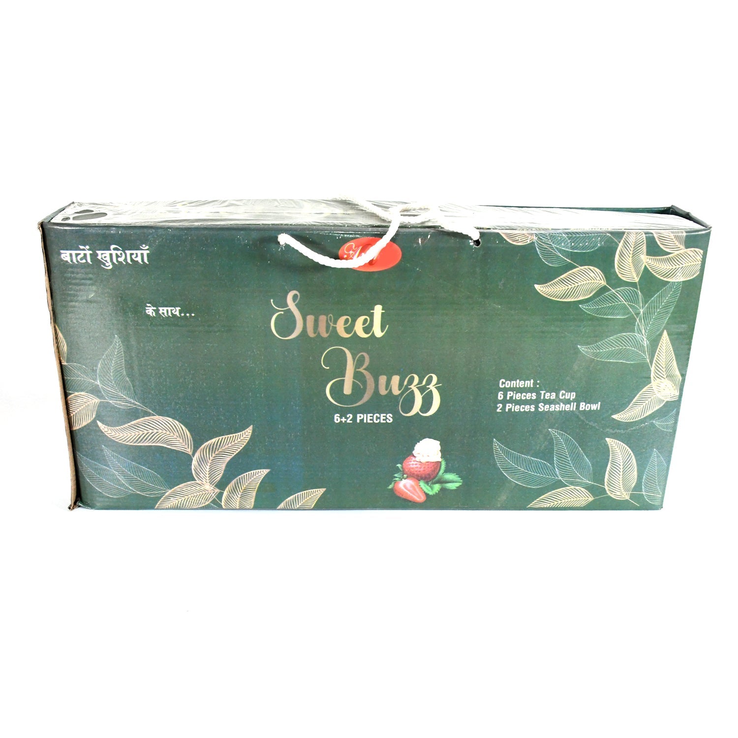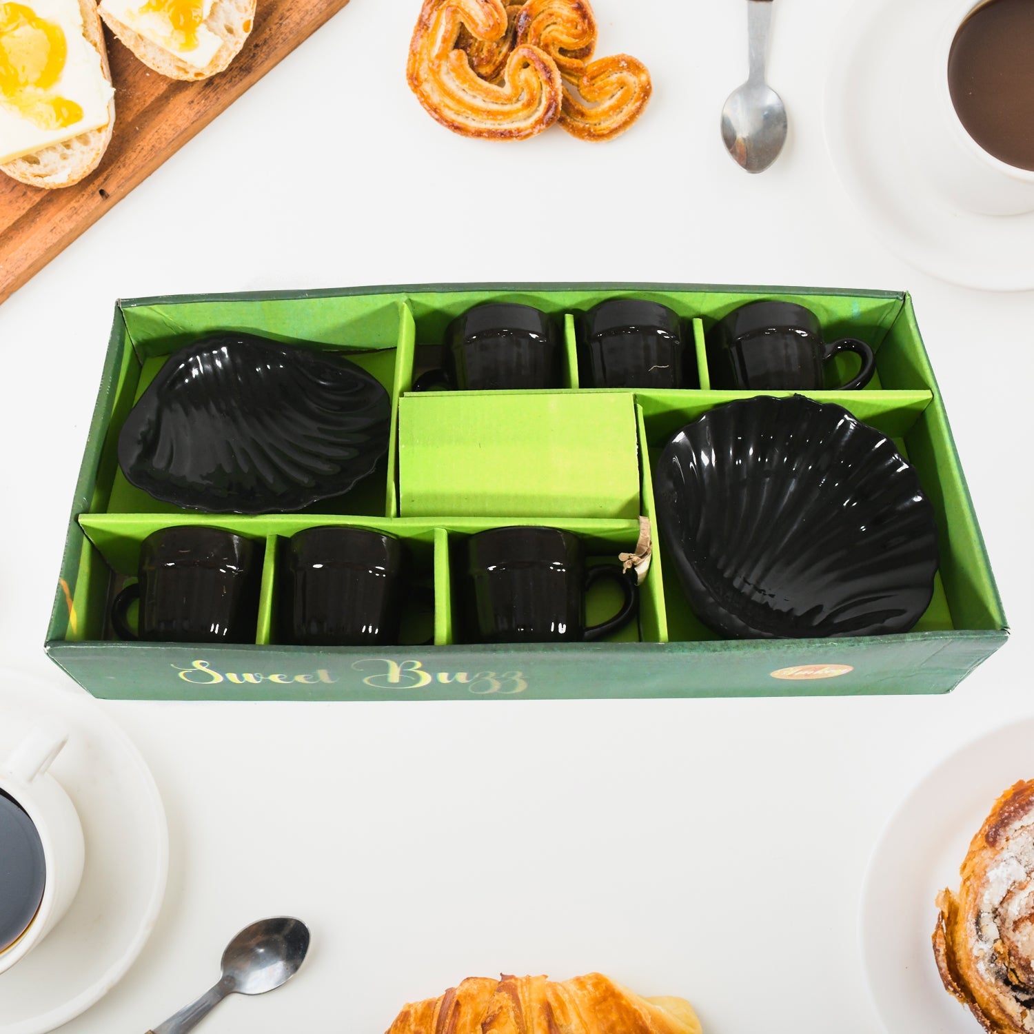 Sweet Buzz Ceramic Tea / cups / Mug Set With Seashell Shape Serving Bowl Milk Cup, Coffee Cup, Tea Cup, Breakfast Cup, Drinking Mug or Outdoor for Household, Gift for Birthday, Wedding Party (8 Pcs set)