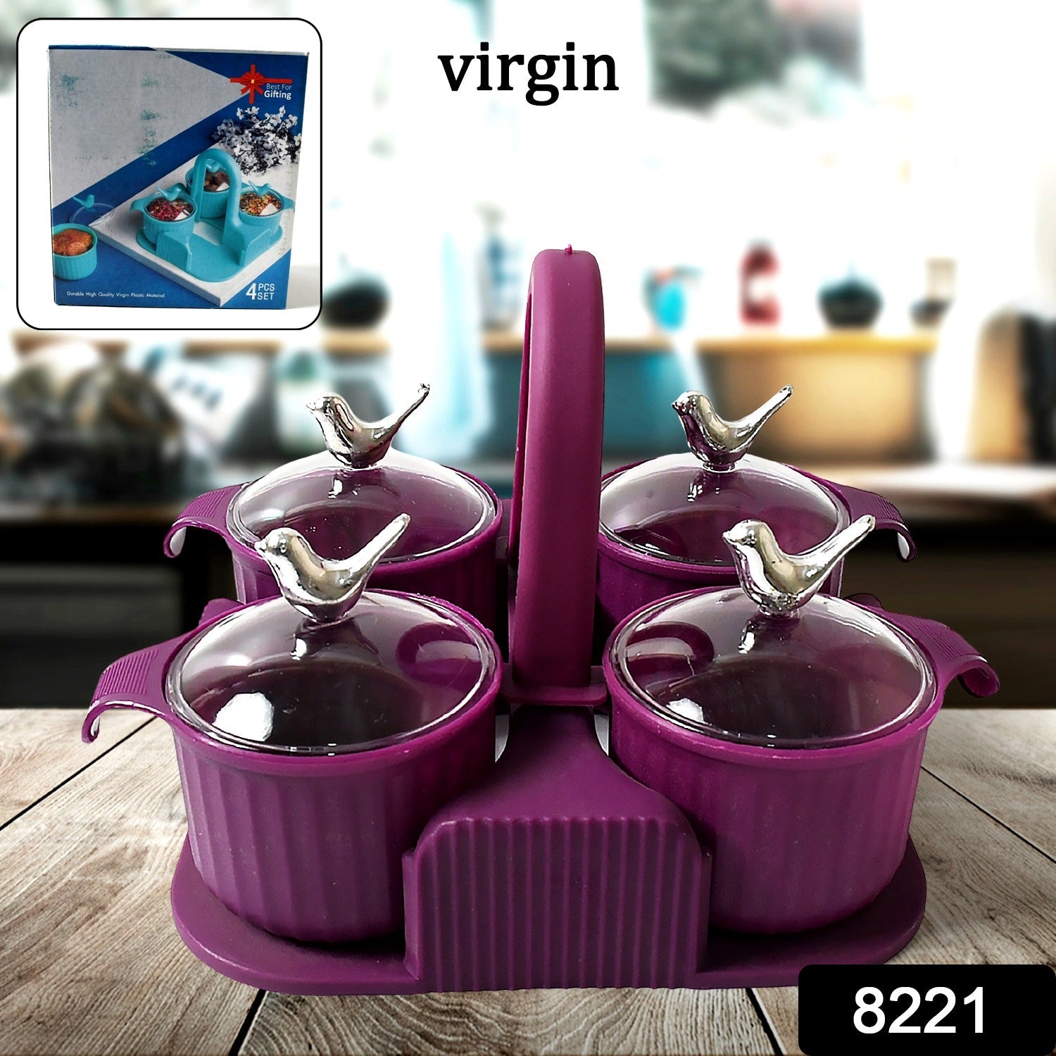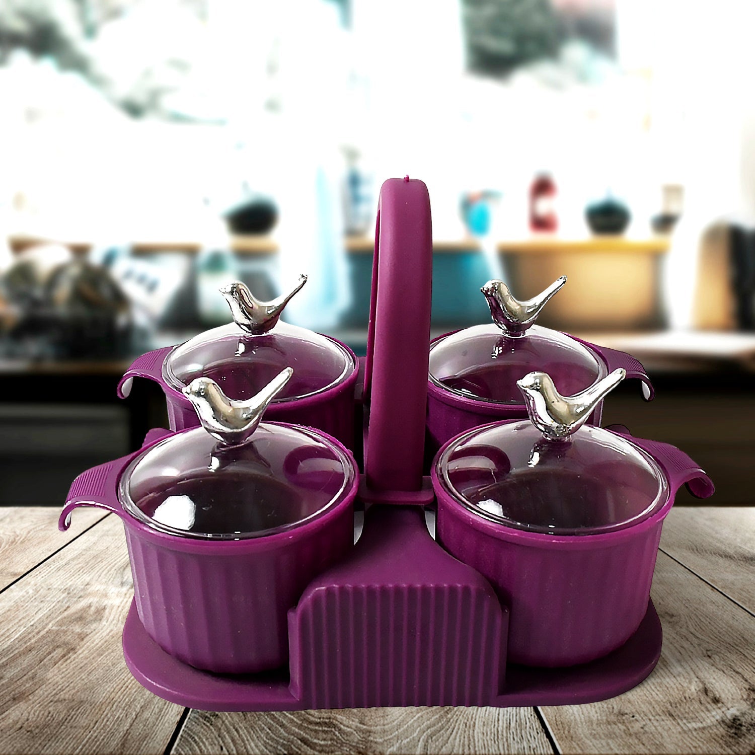 8221 Multipurpose Silver Sparrow, Jar Dry fruit Set, for Home and Kitchen Airtight Dry Fruit Plastic Storage Container Tray Set With Lid & 4 Serving Jar Container for Sweets, Chips, Cookies | (4 Pc Set)