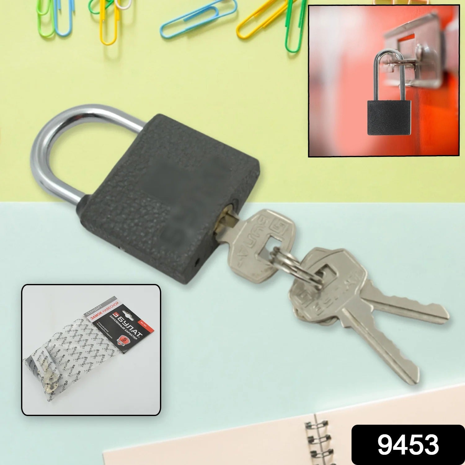 9453 Iron Pad lock, Brass Core and Thickened Spray Black Iron Door Lock With 3 pc Keys for Home Dormitory, Waterproof Antirust Anti-theft Padlocks Outdoor Gate Shed Locks Warehouse Small Iron Door Drawer Lock ( 37 mm )