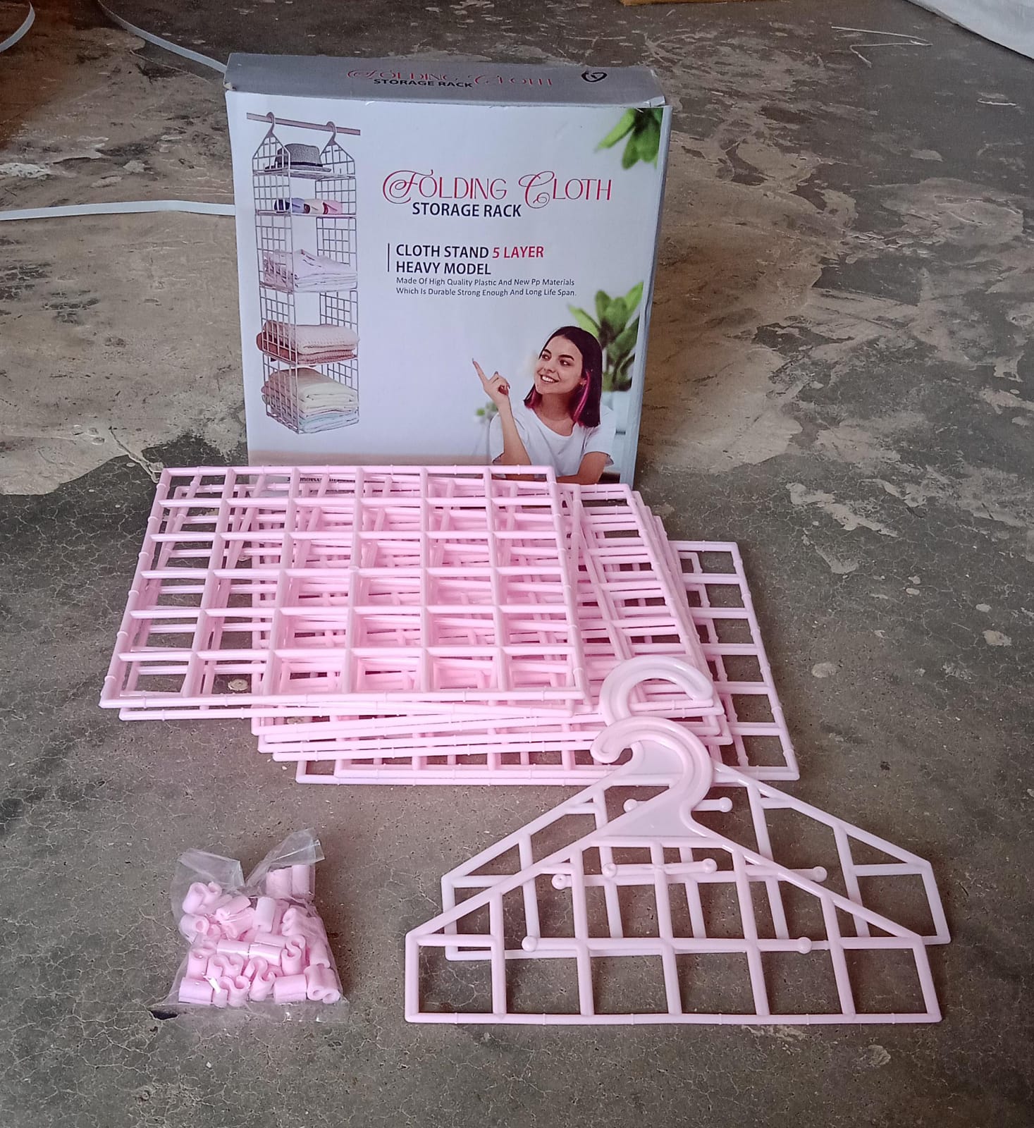 Multipurpose 5 Layer Folding Clothes Storage Racks||Closet for Students Wardrobe Shelves Socks, Scarf, t-Shirt, etc||Hanging Organizer Storage Holders & Racks