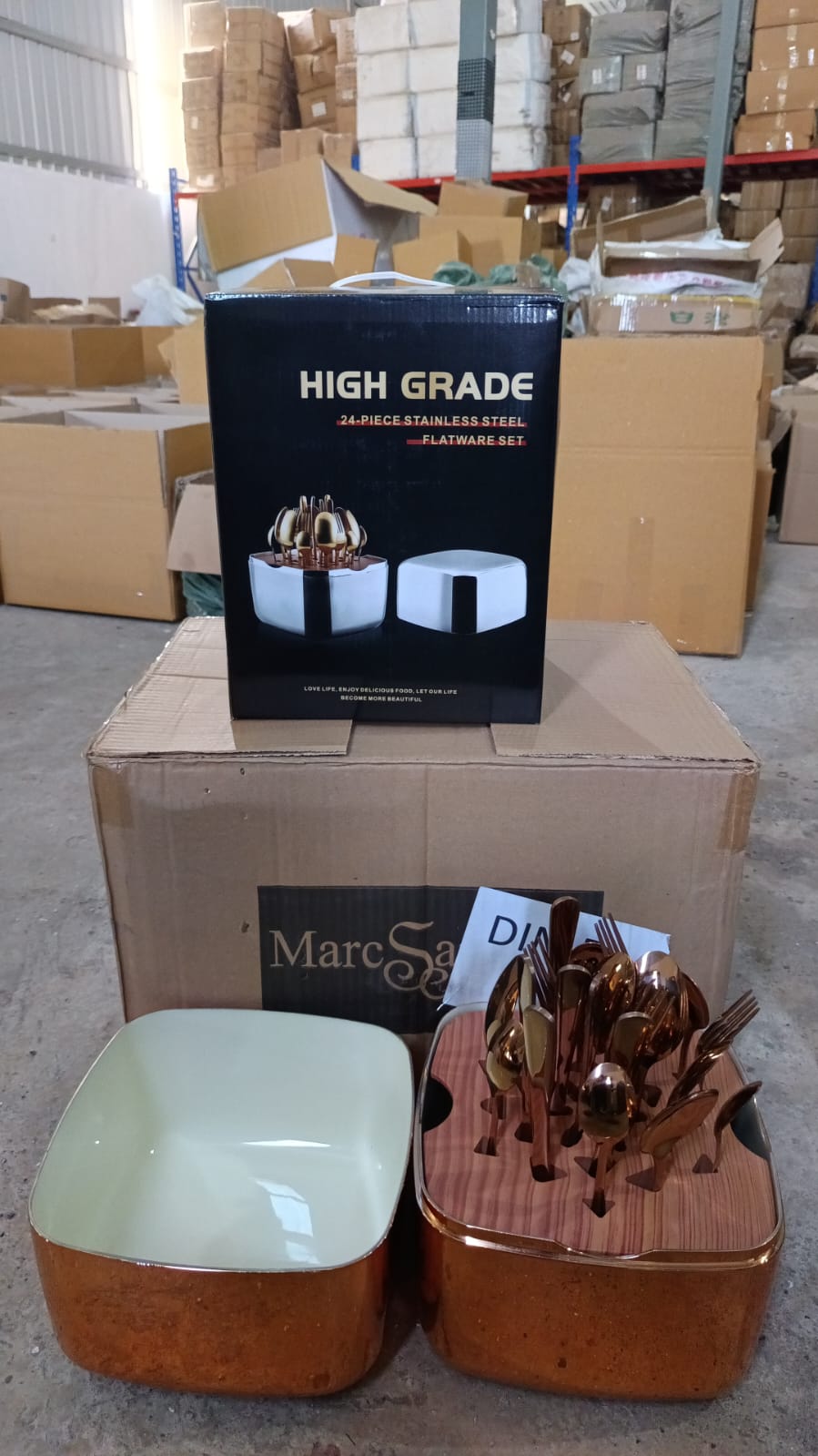 Unique Golden Egg Storage Modern Tableware Steak Knives Fork Flatware Set Royal Spoon Set Tableware Gold Cutlery Set Dishwasher Safe Mirror Finished With Gift Box for Halloween 24Pcs Set)